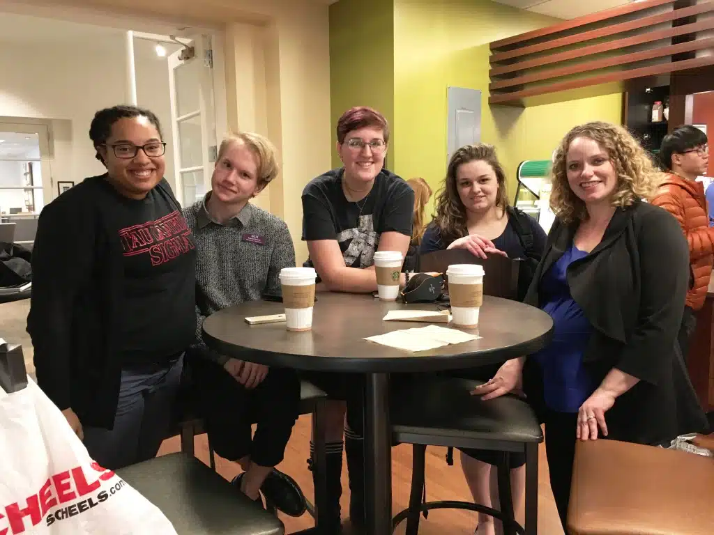 Dr. Jasmine Cloud is an Assistant Professor of Art History at the University of Central Missouri. During her return to Truman in the Spring 2017 semester, Dr. Cloud taught a class for ART 332 Baroque Art on her dissertation research on seventeenth-century adaptations to the Roman Forum, met with Art History students, gave a well-attended public lecture entitled “Taking Possession of the City: Papal Ceremony and Urbanism in the Early Modern Forum,” and met with a variety of Truman faculty members. She also met with a class on Historical Methods about her research and applying to graduate school. PHOTO: Dr. Jasmine Cloud (on far right) with Truman students.